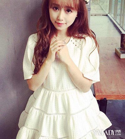 1.纯白色的裙子作为日系搭配示范,它的版型绝对不简单。首先裙摆是模仿了蛋糕裙的层次感,配上花边效果,尽显甜美可爱的气息。另外,肩膀上的镂空设计,也起到一定的装饰作用。